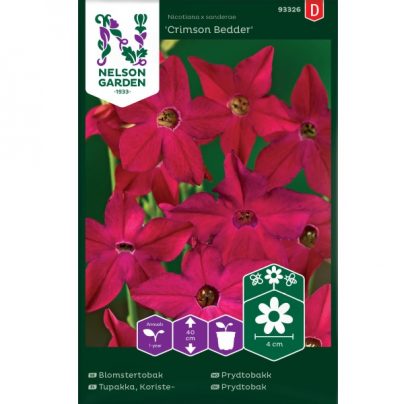 Vidunderlig riktblomstrende og lettdyrket prydtobakk. Trives både på solfylte og skyggefylte steder og er ganske motstandsdyktig mot regn og vind. Sorten er mørkt rød uten duft. Meget vakker både i bed og potte. Trives i næringsrik og veldrenert jord. Gi vann og næring regelmessig. Klipp bort visne blomster.